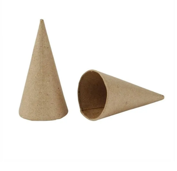 Papier-maché kegels van 8 cm hoog en 4 cm breed in kegelvormige punt zijn ideaal voor kerstknutsels, versieringen en creatieve figuren.